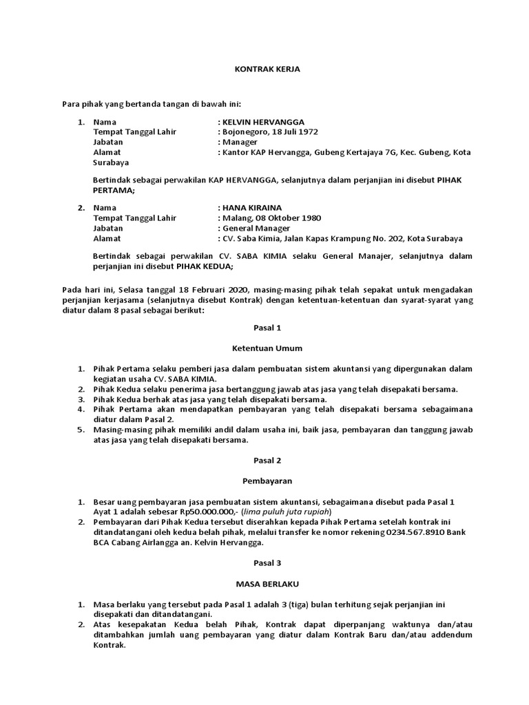 Doc Contoh Format Surat Perjanjian Kontrak Kerjasama S T Academia Edu